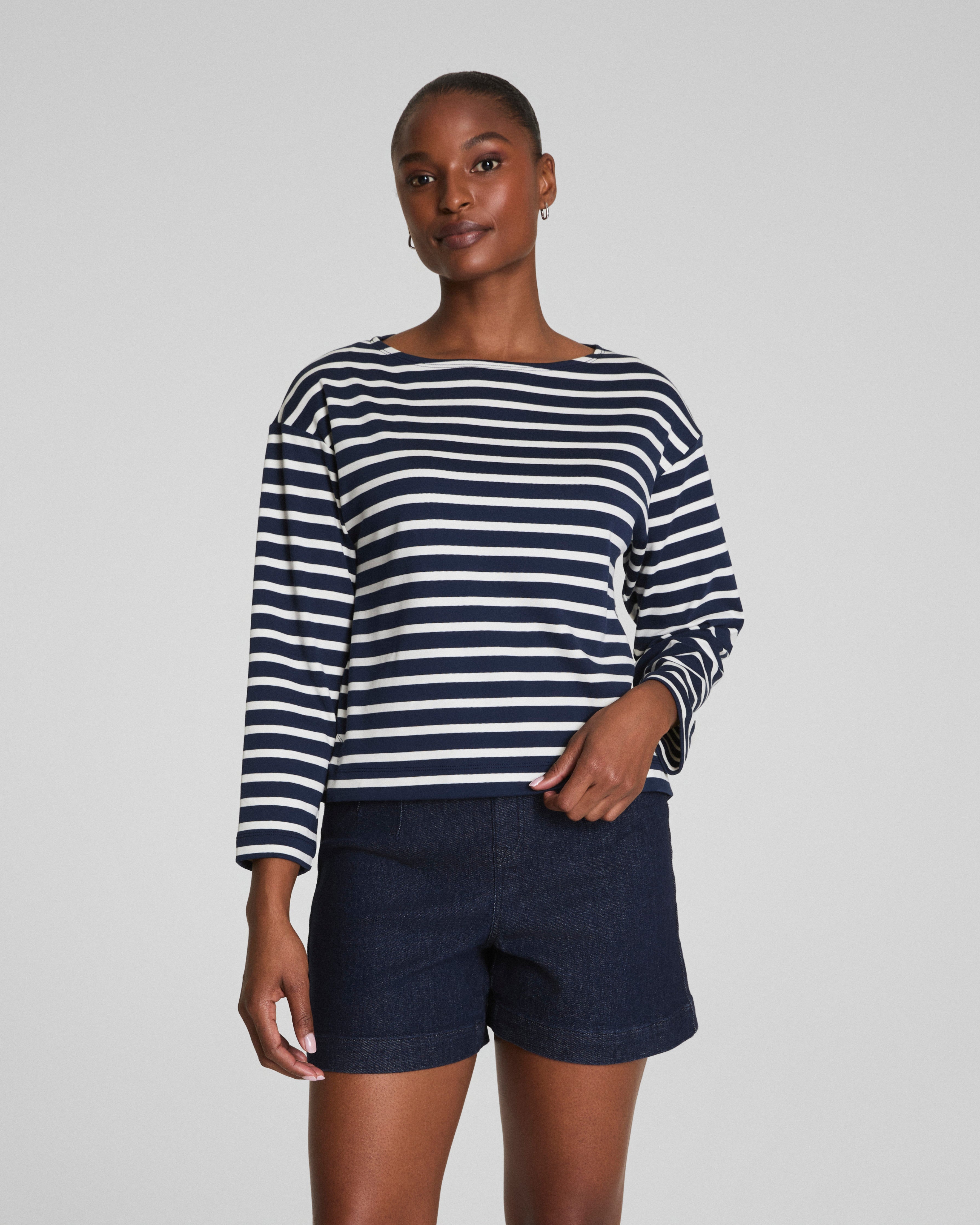 SPANX® Cotton Boatneck Top | Ivory/Timeless Navy