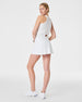This SPANXshape™ CoreLuxe Skort is powered by our built-in. bonded. seam-free CoreLuxe shorts for targeted mid-tummy compression and waist shaping. Designed with a high-rise waistband for a comfortable and flattering fit. this performance skort features a discreet side pocket to store your phone and keys. and a side slit for free. easy movement. This breathable. sweat-wicking. and quick drying skort is super versatile. and is perfect for before. during. and after your workouts.