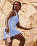 Our SPANXsmooth™ OnForm Halter Dress is made from buttery-soft. lightweight performance fabric with gentle smoothing built in. Breathable. sweat-wicking. and crafted with 4-way stretch. this halter dress features a shelf bra with removable cups for customizable support. hidden shorts with convenient side pockets. and our patent-pending Take Off Technology that makes bathroom breaks easy and fuss-free. This activewear essential is your go-to for before. during. and after your low-intensity workouts like Pilates or yoga.