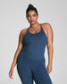 Made with cozy. peachy-soft performance fabric. the SPANXsupersmooth™ SoftStretch Rib V-Neck Shelf Tank offers gentle all-over smoothing with 4-way stretch in a stylish ribbed texture. This moisture-wicking. quick-drying tank includes a racerback design for extra ventilation and a built-in shelf bra for added support. Combining comfort and performance. this tank is perfect for low-impact movement and just-as-easygoing outings.